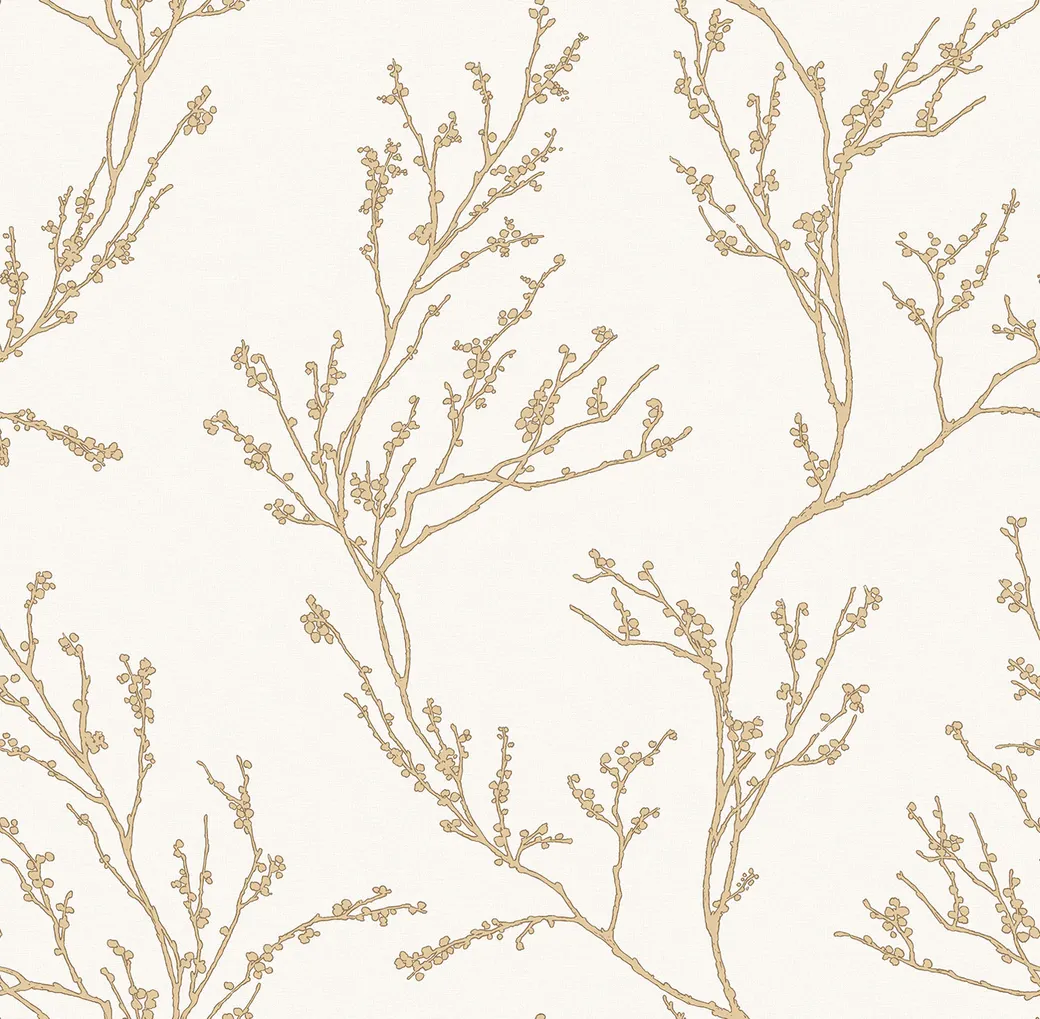 Обои Andrea Rossi Spectrum Pro 54386-1 Винил на флизелине (1,06*10) Белый/Золото, Листья/Рогожка