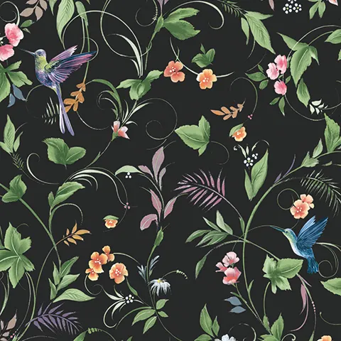 Обои Andrea Rossi Stromboli 54346-5 Винил на флизелине (1,06*10) Черный/Разноцветный, Листья/Цветы/Птицы