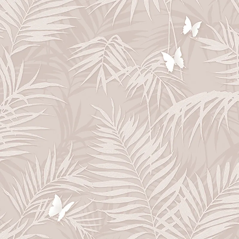 Обои Andrea Rossi Stromboli 54348-3 Винил на флизелине (1,06*10) Бежевый/Розовый, Листья/Бабочки