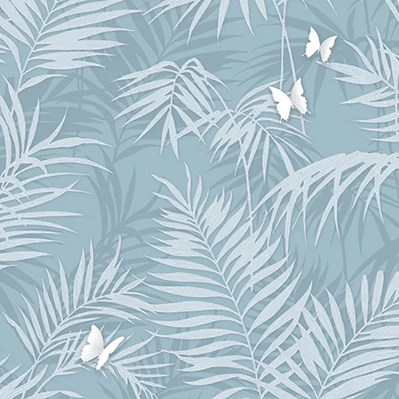 Обои Andrea Rossi Stromboli 54348-7 Винил на флизелине (1,06*10) Синий, Листья/Бабочки