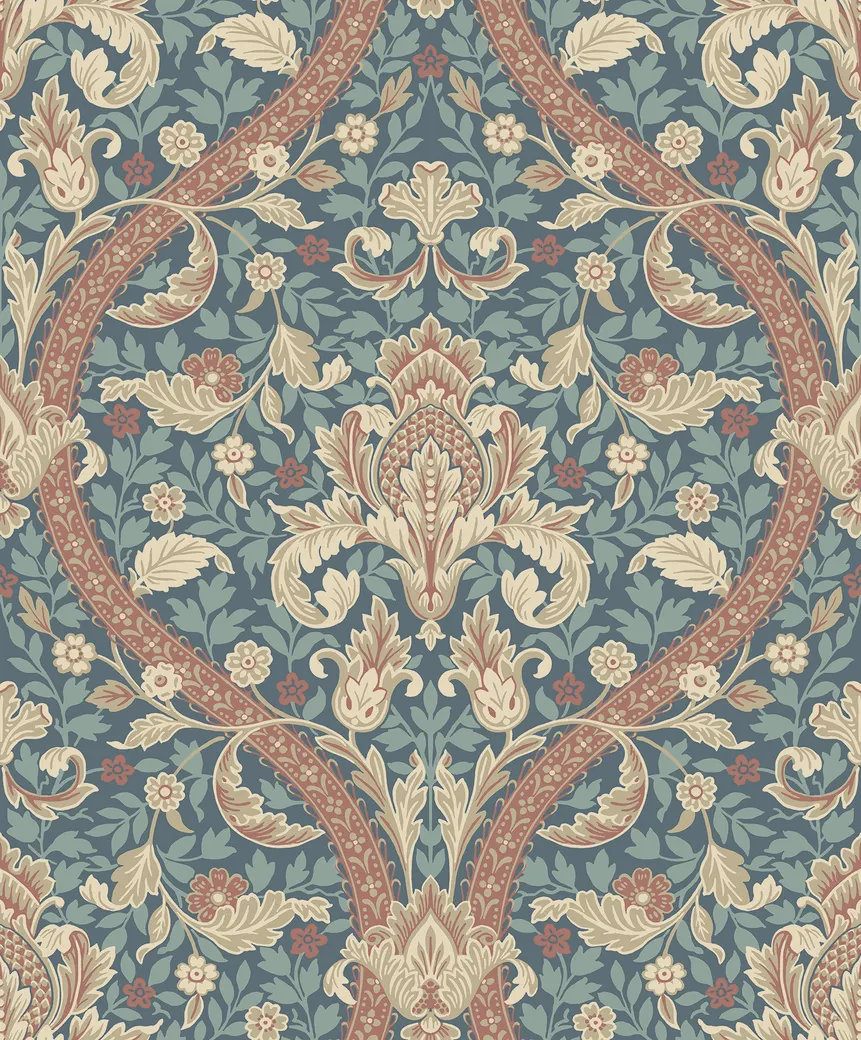 - Классический дизайн: Дамасский узор в стиле У. Морриса добавляет интерьеру изысканности.
