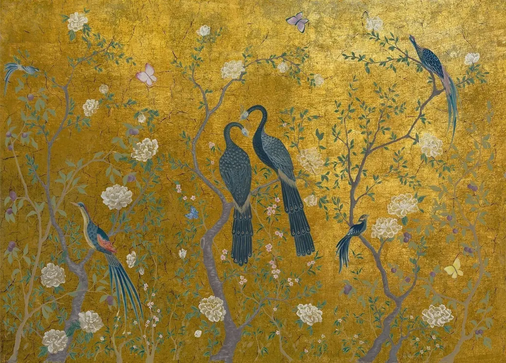 - Восточный рисунок: Создает уникальную атмосферу с изображениями птиц и растений.