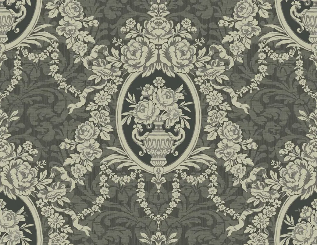 Обои RD80600 от американского бренда Architector относятся к коллекции Lancaster. Они предназначены для оформления интерьеров в классическом стиле и подойдут для различных помещений, таких как спальня, кабинет и гостиная. Эти бумажные обои имеют уникальный черный цвет и стильный рисунок с медальонами и вазонами.