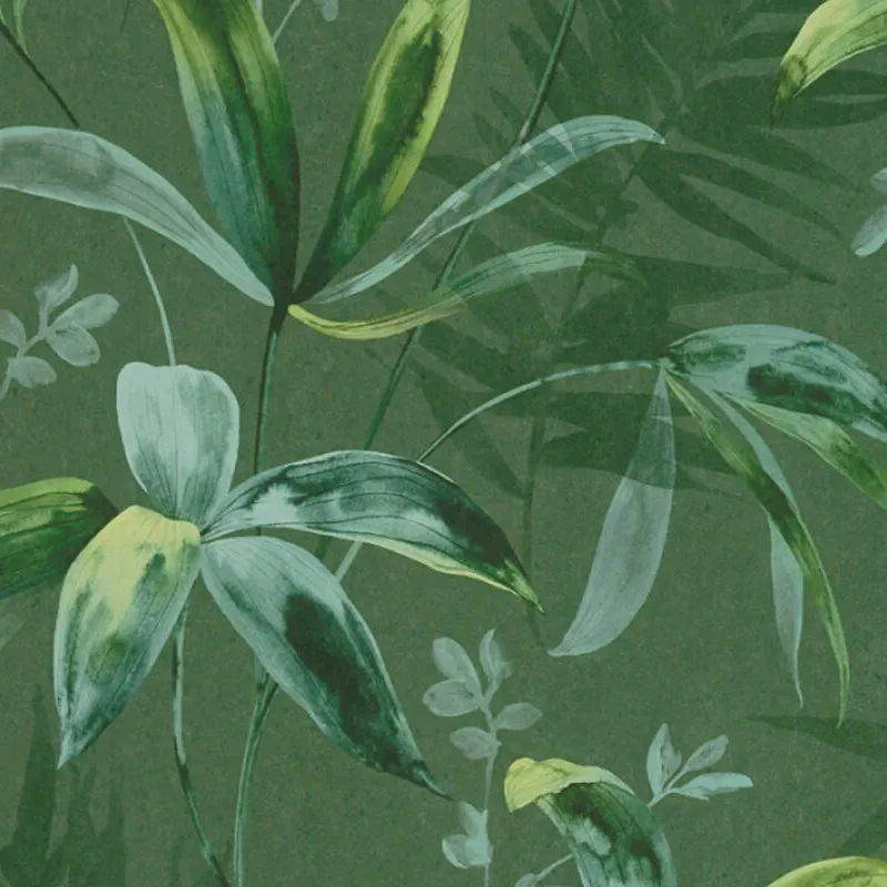 Обои 37704-2 от компании Architects Paper, произведенные в Германии, относятся к коллекции Jungle Chic. Эти флизелиновые обои зеленого цвета с изображением растений и ветвей подходят для создания успокаивающей атмосферы в интерьере.