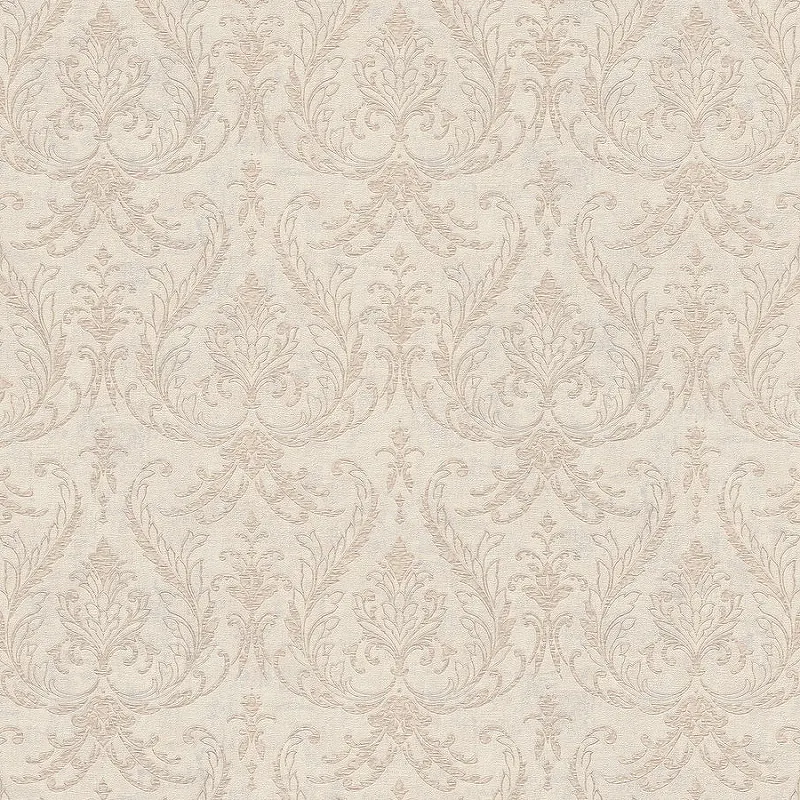 В комплекте поставляется рулон обоев с параметрами 1,06*10,05 м, выполненный в изысканном бежевом цвете с дамасским узором.