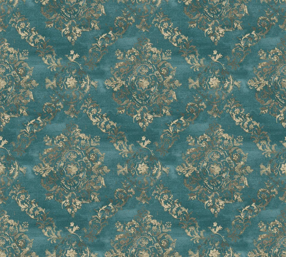 Обои AS Creation Garda 38729-5 Винил на флизелине (1,06*10,05) Бирюзовый/Золото, Дамаск