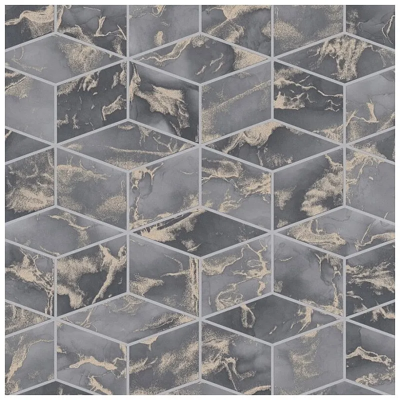 - Винил на флизелине (1,06*10,05) Серый/Золото, Геометрия
