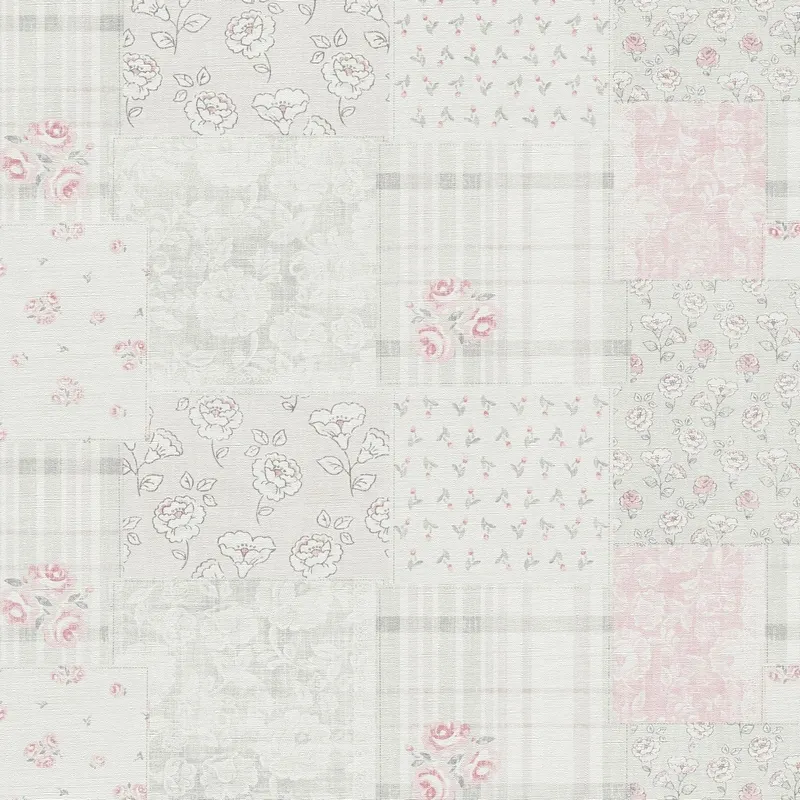 Обои AS Creation Maison Charme 39066-3 Винил на флизелине (0,53*10,05) Белый/Розовый/Серый, Геометрия/Клетка/Цветы
