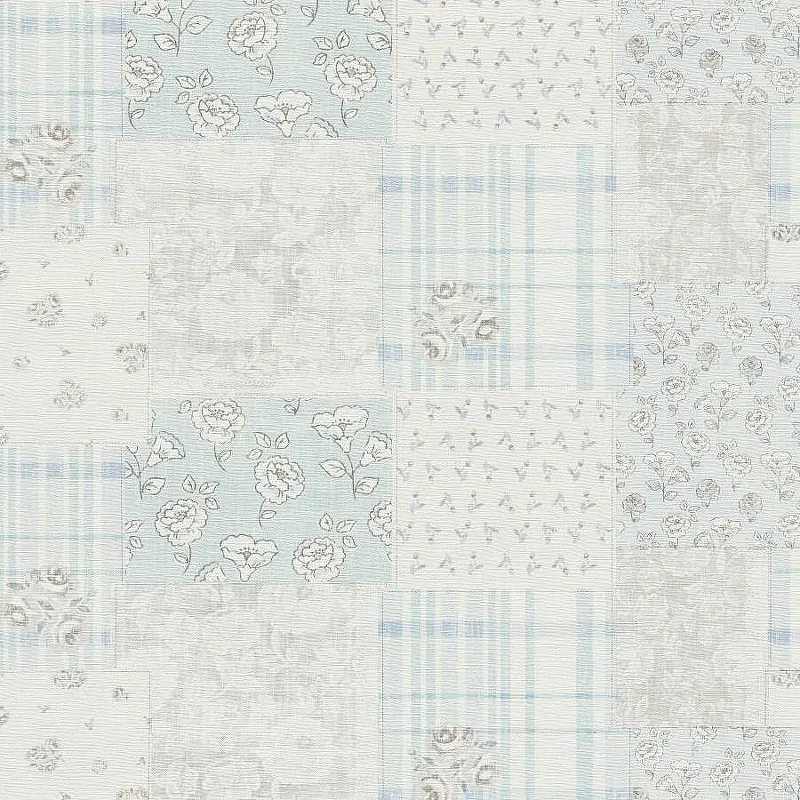 Обои AS Creation Maison Charme 39066-4 Винил на флизелине (0,53*10,05) Белый/Бирюзовый/Серый, Геометрия/Клетка/Цветы