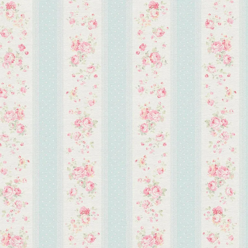 Обои AS Creation Maison Charme 39069-1 Винил на флизелине (0,53*10,05) Белый/Голубой/Розовый, Полоса/Цветы