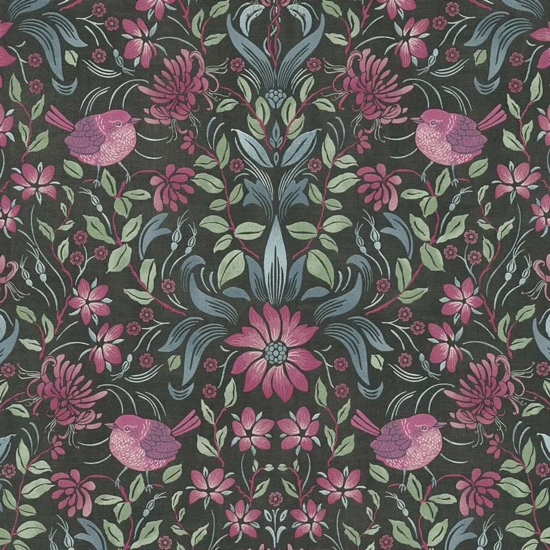 Обои AS Creation Maison Charme 39075-1 Винил на флизелине (0,53*10,05) Черный/Разноцветный, Птицы/Цветы