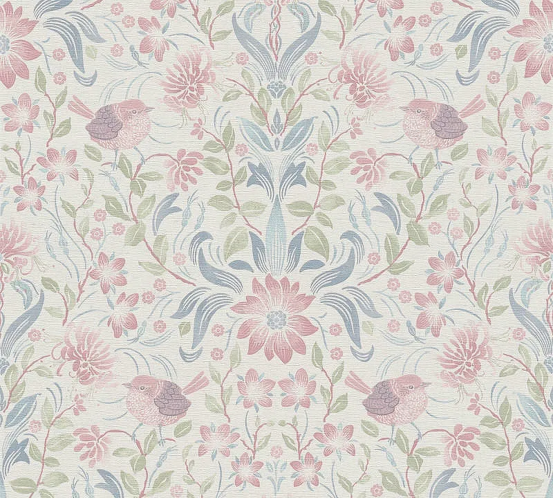 Обои AS Creation Maison Charme 39075-3 Винил на флизелине (0,53*10,05) Белый/Разноцветный, Птицы/Цветы
