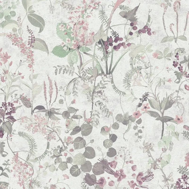 Обои AS Creation Original View 38825-1 Винил на флизелине (0,53*10,05) Розовый/Зеленый, Листья/Цветы