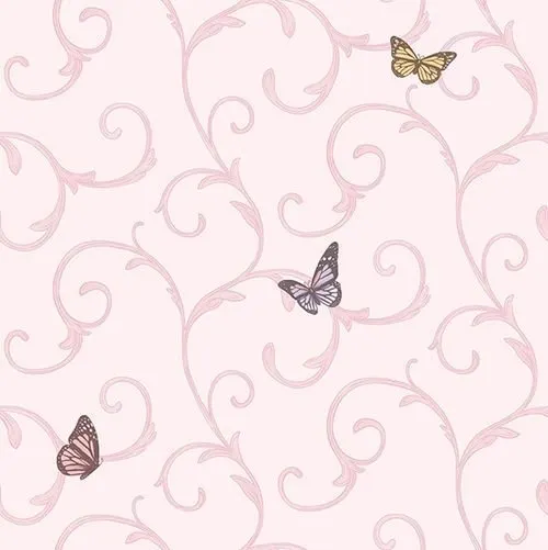 Обои H2910901 от канадского производителя Aura представляют собой флизелиновый вариант из коллекции Forever Young. Эти обои имеют светлый розовый цвет и рисунок с бабочками и вензелями, что делает их подходящими для детских комнат.