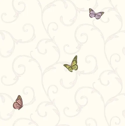 Обои Aura Forever Young (арт. H2910902) представляют собой рулонные флизелиновые покрытия, разработанные канадской фабрикой Aura. Эти обои отличаются спокойными бело-бежевыми оттенками и элегантным рисунком с бабочками и вензелями, что делает их идеальными для оформления детской комнаты и других жилых пространств.