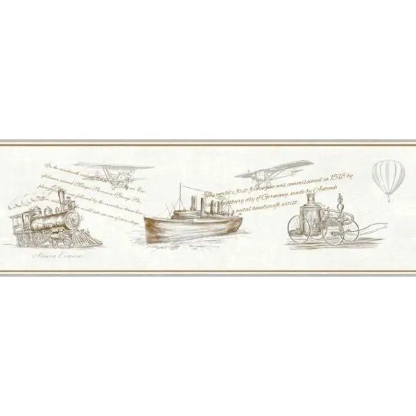 Обои H2916001 от канадского производителя Aura из коллекции Forever Young предназначены для создания уютного и стильного интерьера. Эти флизелиновые бордюры имеют светлую цветовую палитру и рисунок в стиле транспорта, что делает их универсальным решением для оформления детских комнат и игровых зон.