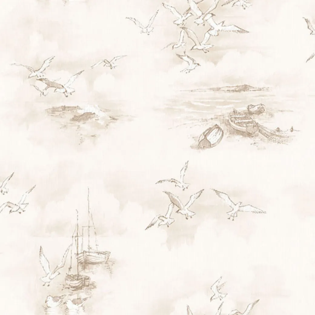 Обои G56425 от канадского производителя Aura относятся к коллекции Global Fusion. Эти флизелиновые рулонные покрытия имеют спокойный бежевый цвет и рисунок с морской тематикой и птицами, что делает их подходящими для различных помещений.
