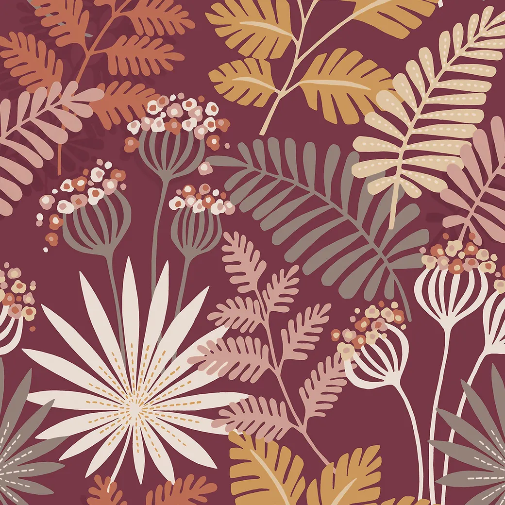 Обои Aura Happy арт-FD26449 представляют собой флизелиновые рулонные покрытия, предназначенные для использования в различных помещениях, таких как кухня, спальня и гостиная. Их отличает яркий цветовой диапазон, включающий красный и фиолетовый оттенки, а также природные мотивы в виде растений и веток.