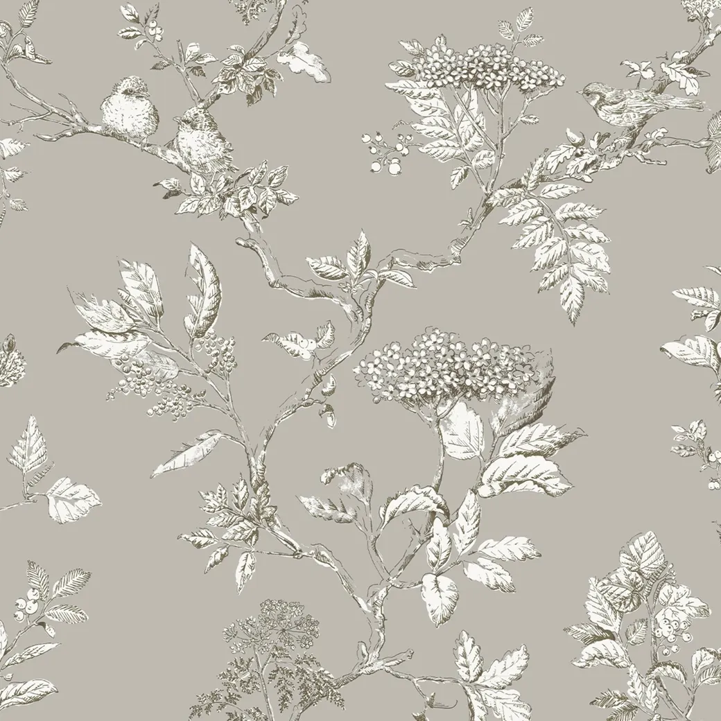 Обои Aura Laura Ashley арт-113347 — это флизелиновые рулонные обои с характерным серым фоном, которые подходят для различных помещений, включая кухню, гостиную и спальню. Дизайн включает изображения птиц и растений, что создает атмосферу спокойствия и умиротворенности.
