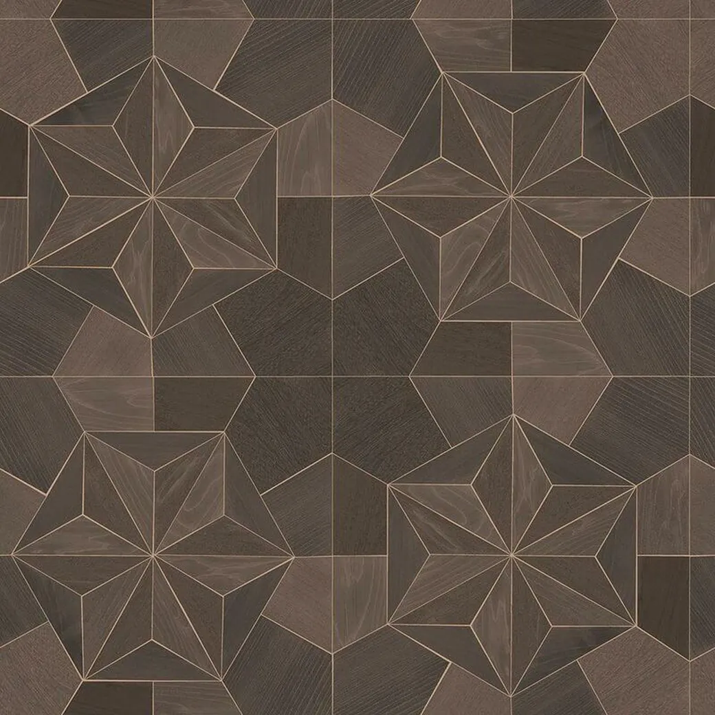 Обои Aura Organic Textures G67986 представляют собой виниловые обои на флизелиновой основе, выполненные в тёмных коричневых тонах с геометрическим узором, имитирующим текстуру дерева. Эти обои идеально подходят для современных интерьеров, таких как кабинеты, прихожие и коридоры.