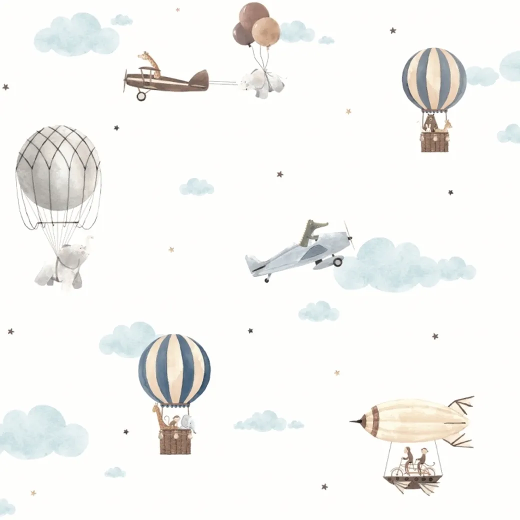 Обои Aura Pippo арт-456-1 — это рулонные бумажные обои, предназначенные для детских комнат. Они имеют светлую палитру белого и голубого цветов с тематическим рисунком, который понравится мальчикам. Данная модель объединяет практичность и эстетичность, создавая уютную атмосферу для ребенка.