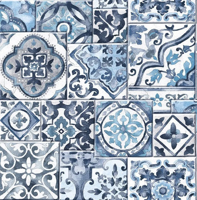 Обои Aura Reclaimed FD22316 представляют собой флизелиновое покрытие, изготовленное в Канаде. Эти обои отличаются глубоким синим цветом и рисунком, имитирующим плитку, что делает их универсальным решением для оформления интерьера.