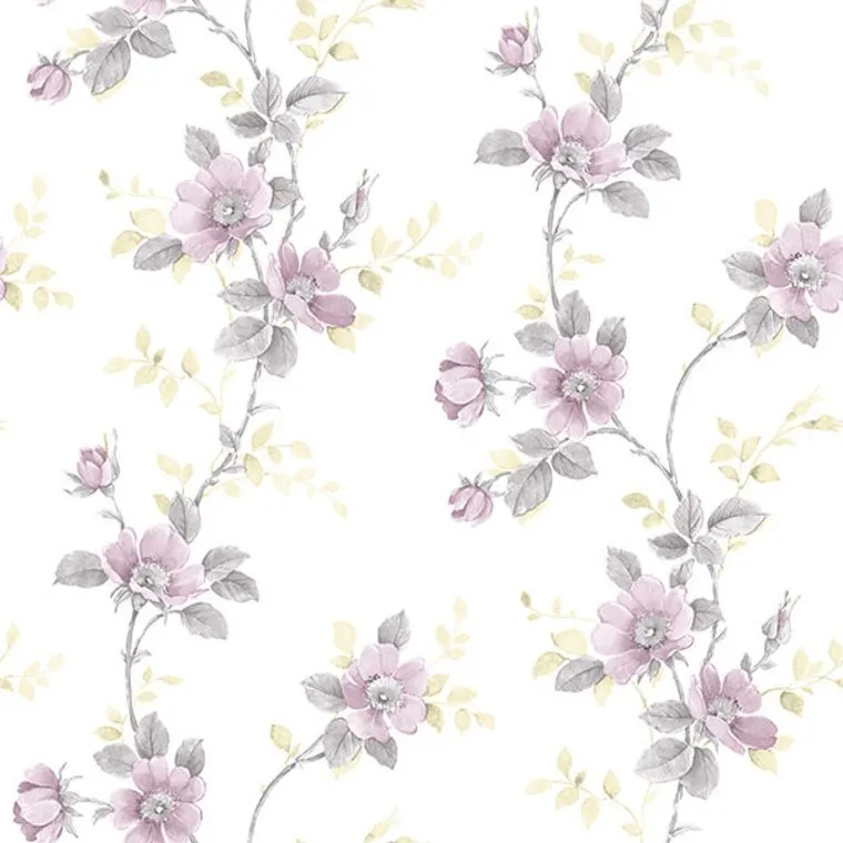 - Дизайн в стиле прованс: Нежные фиолетовые цветы на светлом фоне создают уютный и свежий интерьер.