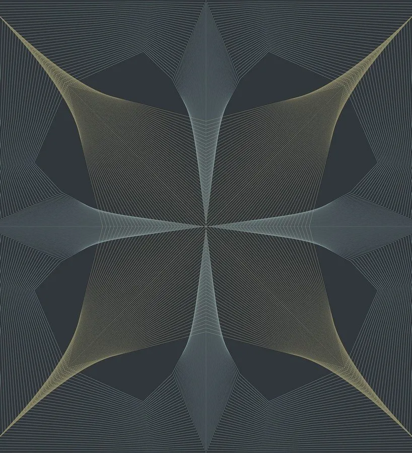 Обои Aura Theory арт-FD25526 представляют собой флизелиновое покрытие для стен, произведенное в Канаде. Они имеют геометрический узор в темных синих и черных тонах, что делает их подходящими для современных интерьеров.