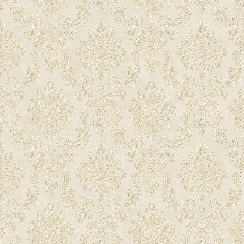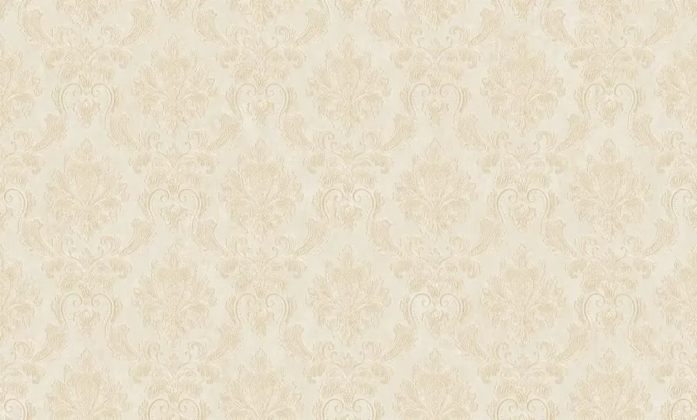 - Флизелиновые обои размером 1,06 м x 10,05 м, бежевого цвета с дамасским рисунком.