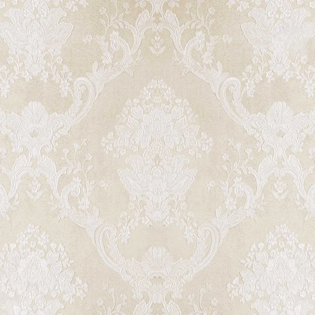 - Эстетичность и стиль: Дамасский рисунок в бежево-белой гамме придаст интерьеру утонченность и изысканность.