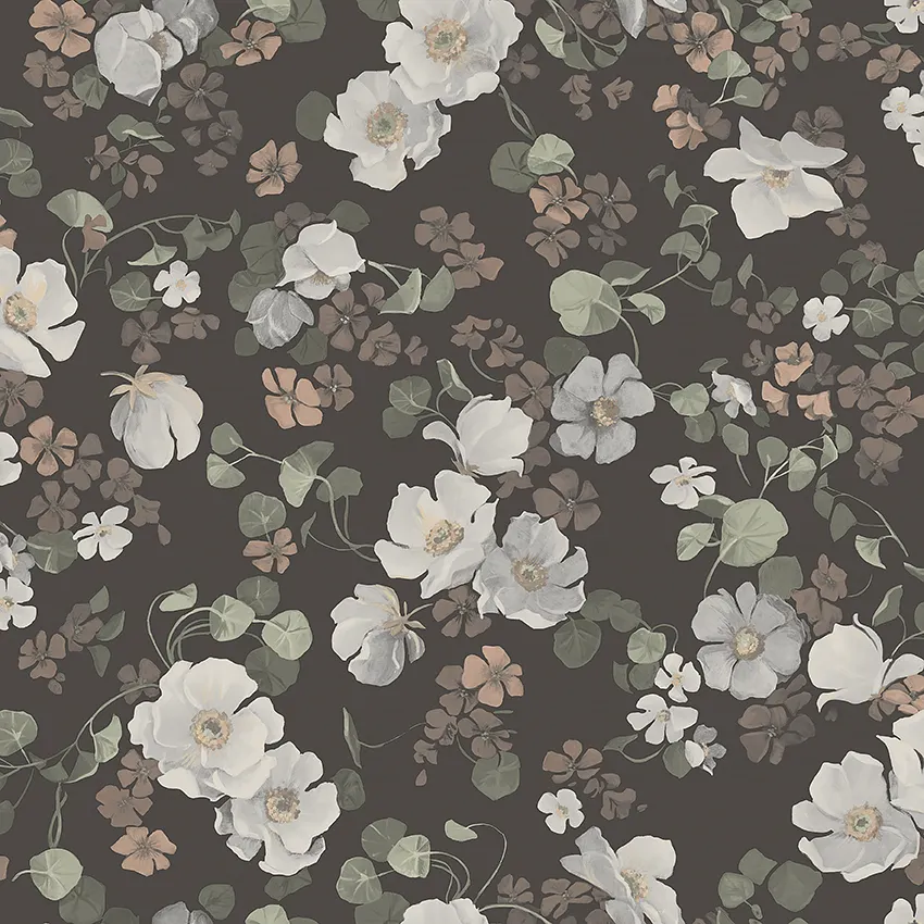 Обои Borastapeter Dreamy Escape арт-4278 представляют собой флизелиновые рулоны, предназначенные для оформления помещений в стиле Прованс. Они имеют черный цвет с мелким цветочным рисунком, что позволяет визуально расширить пространство, добавляя ему уют.