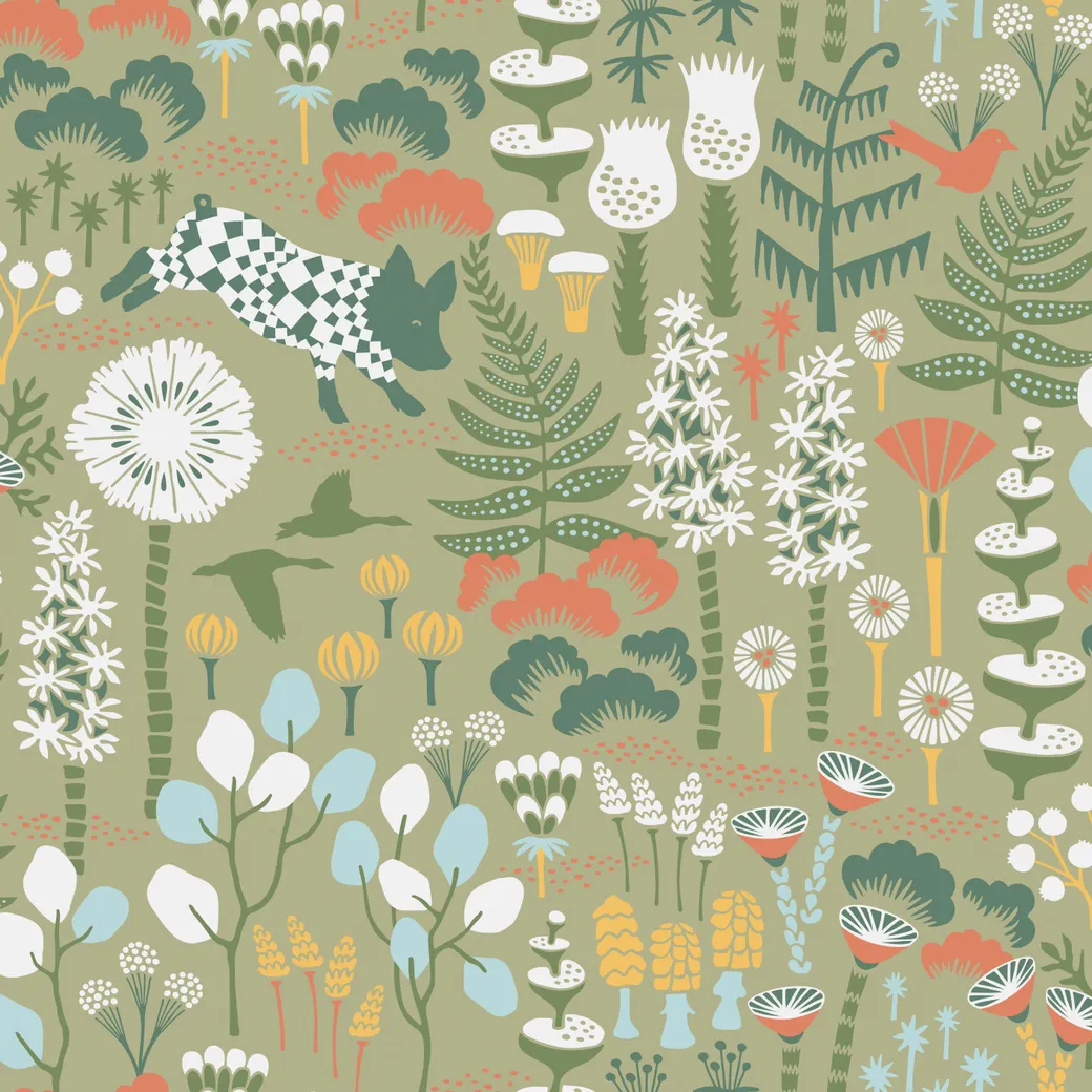 Обои Borastapeter Wonderland арт-1451 предназначены для оформления детских комнат. Они выполнены из флизелина, что обеспечивает легкость в монтаже и демонтаже. Цветовая гамма включает успокаивающие оттенки зеленого, что способствует созданию комфортной атмосферы.