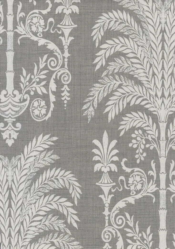 Обои Calcutta Castilla арт-517023 представляют собой виниловые обои премиального класса, разработанные бельгийским производителем Calcutta. Они имеют серый цвет с дамасковым рисунком, что делает их подходящими для классических и минималистичных интерьеров.