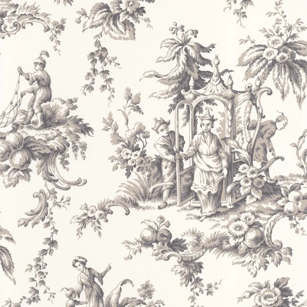 Обои Casadeco арт-87939516 из коллекции Les Belles Toiles de Jouy выполнены в черно-белом цвете с рисунком в стиле «жуи». Эти флизелиновые обои подходят для оформления различных помещений, включая гостиную и спальню, и отличаются высокой экологичностью.