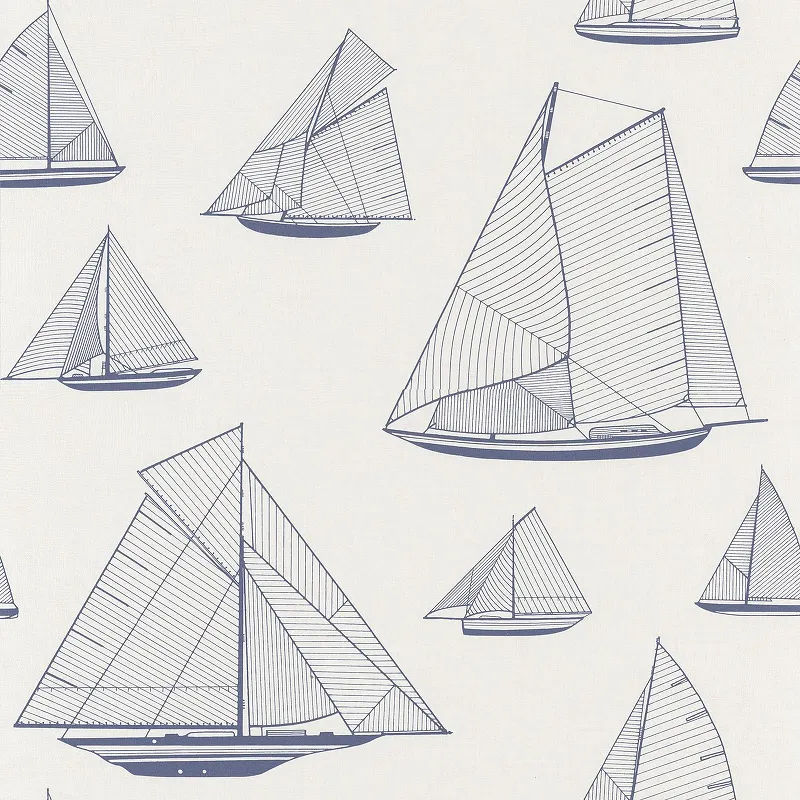 Обои Casadeco Rivage 84026131 Винил на флизелине (0,53*10,05) Белый/Синий, Корабли