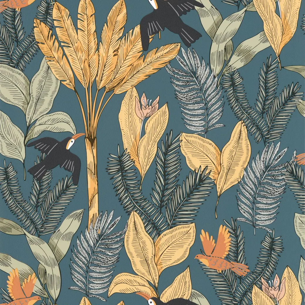 Обои Caselio Autour Du Monde арт-103496043 представляют собой флизелиновые рулонные обои, выполненные в ярких цветах с темной основой. Дизайн включает в себя изображения птиц и растений, что делает их подходящими для детских комнат. Изготовлены во Франции, эти обои сочетают в себе современный стиль и экологически чистые материалы.