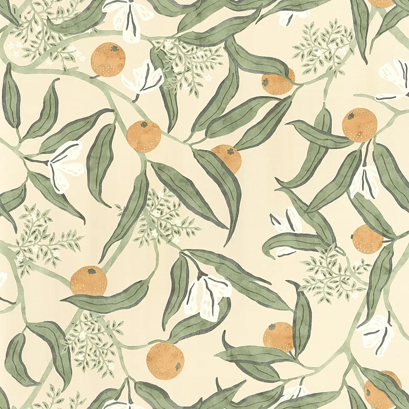 Обои Caselio Danae 103611077 Винил на флизелине (53*10,05) Бежевый/Зеленый/Оранжевый, Листья/Фрукты