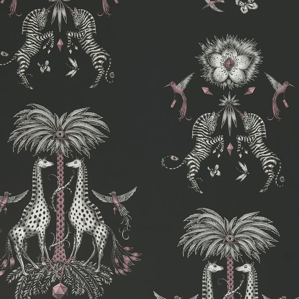 Обои Clarke & Clarke Wilderie арт-W0114-01 представляют собой флизелиновые рулоны длиной 10.05 м и шириной 52 см. Они выполнены в черном цвете с рисунком животных, что делает их подходящими для различных помещений, включая спальни, гостиные и кабинеты.