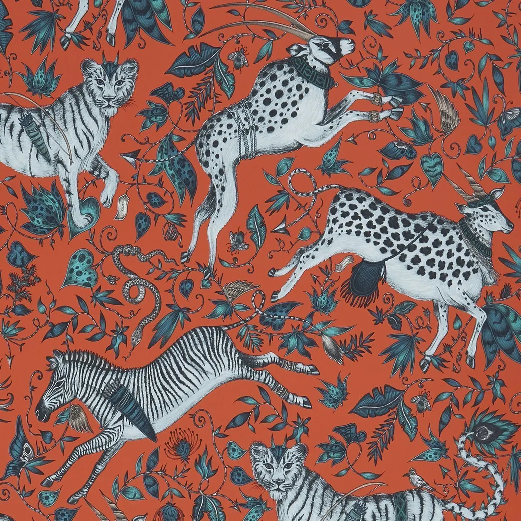 Обои W0119-03 от Clarke & Clarke представляют собой флизелиновый отделочный материал с ярким красным рисунком, изображающим животных. Эти обои идеально подходят для различных помещений, включая гостиную, кабинет и спальню, привнося в интерьер элементы природы.