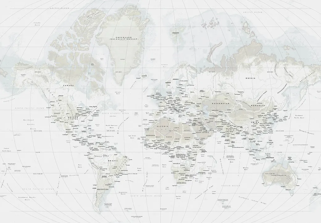 Обои Coordonne арт-8500131 из коллекции Instant сочетают в себе стильный дизайн и высокое качество. Эти флизелиновые обои с изображением карты мира идеально подходят для оформления детских и кабинетов.