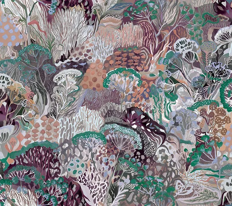 Обои Coordonne Mallorca арт-8400062 представляют собой флизелиновые рулоны с сюжетным рисунком, выполненные в гармоничных зеленых и фиолетовых тонах. Эти обои идеально подходят для создания уютной атмосферы в гостиных и спальнях, благодаря природным мотивам и экологически чистым материалам.