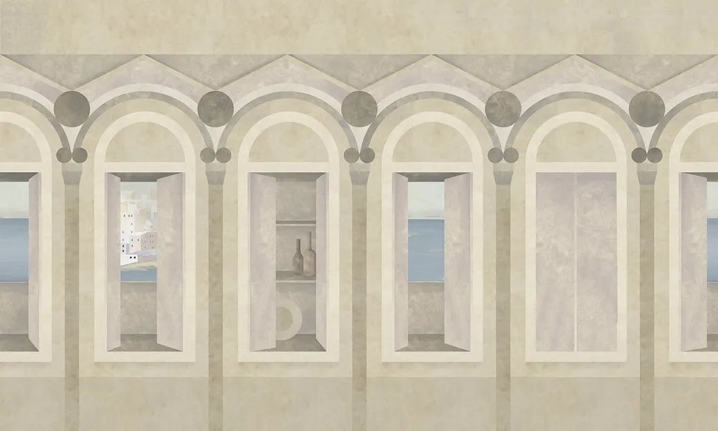 - Тематика рисунка: Архитектурный рисунок добавляет уникальности интерьеру.