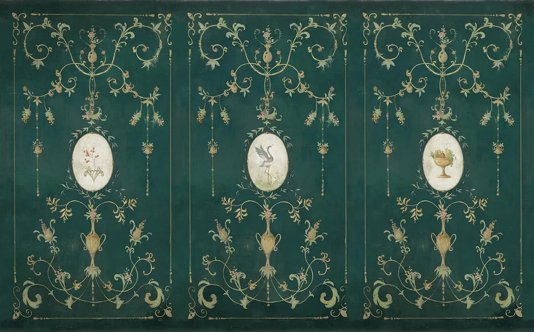 Обои Coordonne Random Chinoiseries (арт-7900093) представляют собой флизелиновые фотообои, разработанные испанским дизайнерским бюро Coordonne. Эти обои имеют богатый зеленый цвет и разнообразные рисунки, включая вензели и медальоны, что делает их подходящими для различных интерьеров.
