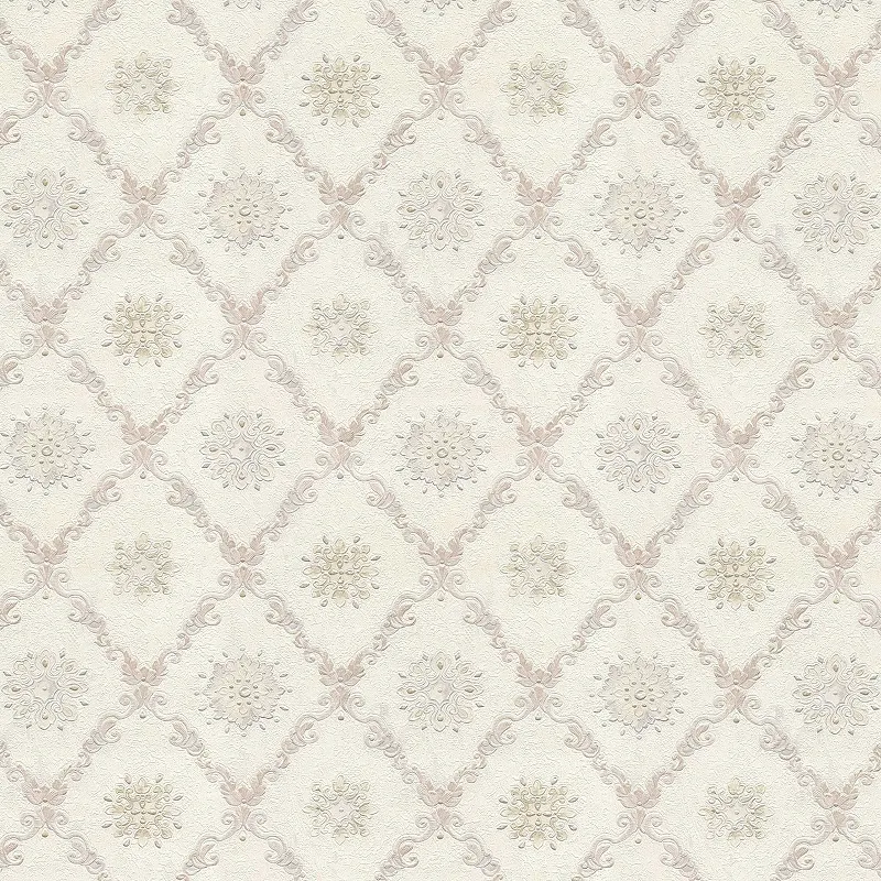 Обои Decori-Decori Amore 82824 Винил на флизелине (1,06*10,05) Белый/Розовый, Орнамент/Ромб