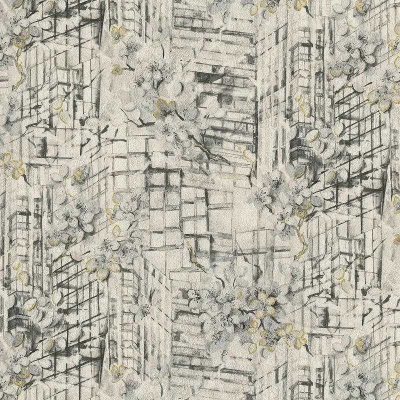 Обои Decori-Decori City 83265 Винил на флизелине (1,06*10,05) Белый/Черный, Цветы