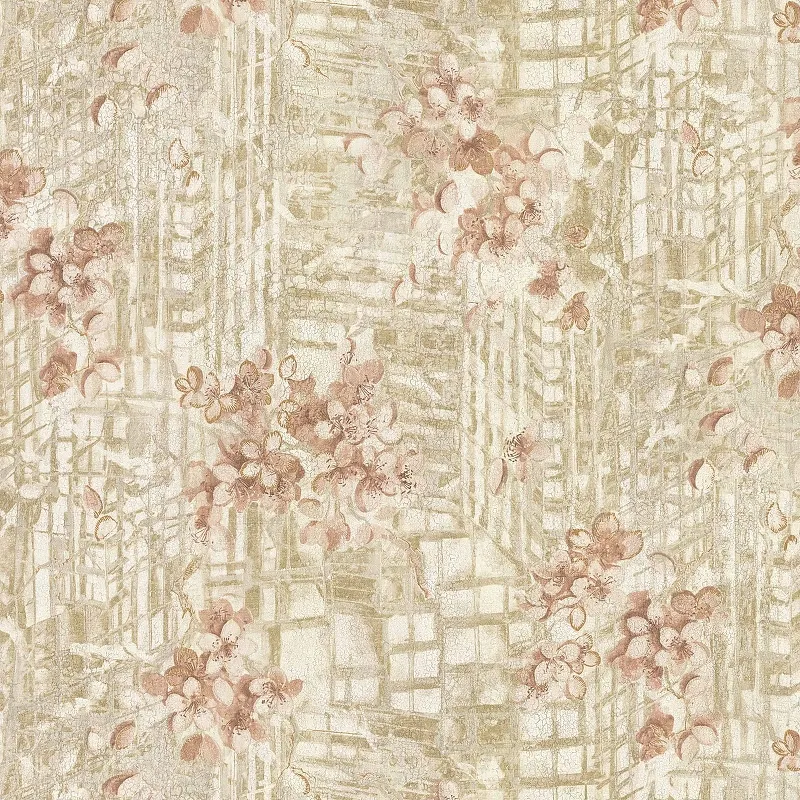 Обои Decori-Decori City 83268 Винил на флизелине (1,06*10,05) Бежевый/Розовый, Цветы