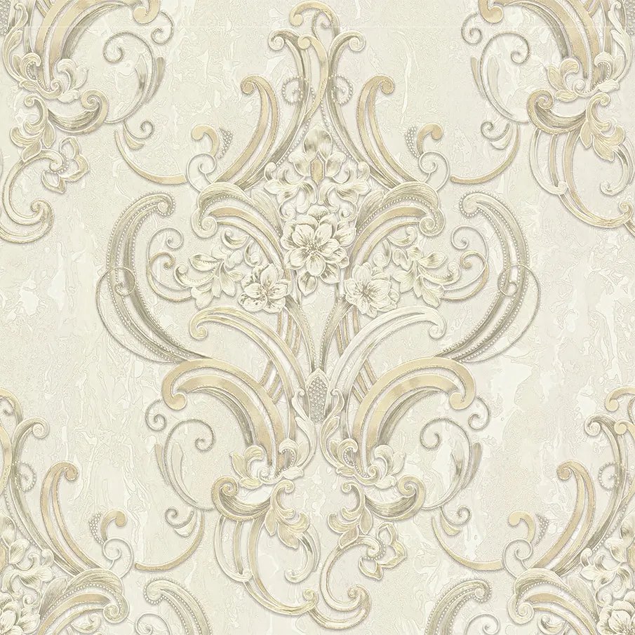 - Эстетическая привлекательность: Дамасский узор и бежевый цвет обоев создают уютную атмосферу и легко сочетаются с различными элементами декора.