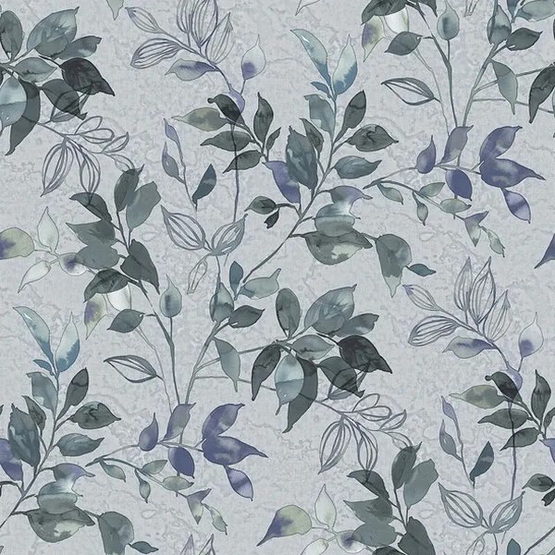 - Винил на флизелине (1.06*10,05) Серый/Зеленый, Листья