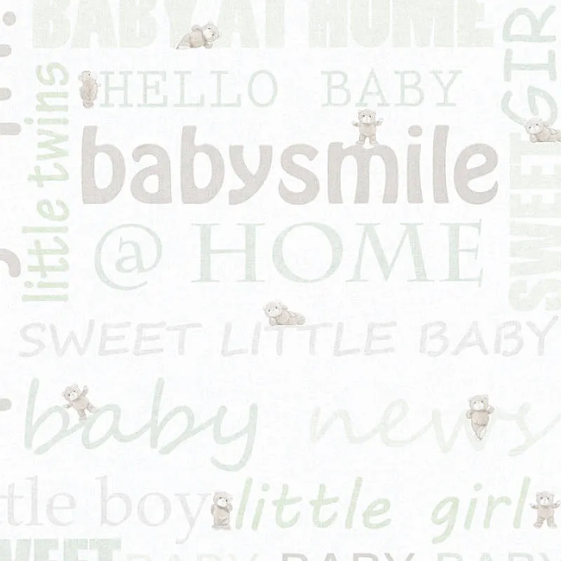 Обои детские AS Creation Little Stars 35847-2 Винил на флизелине (0,53*10,05) Белый/Серый/Зеленый, Надписи