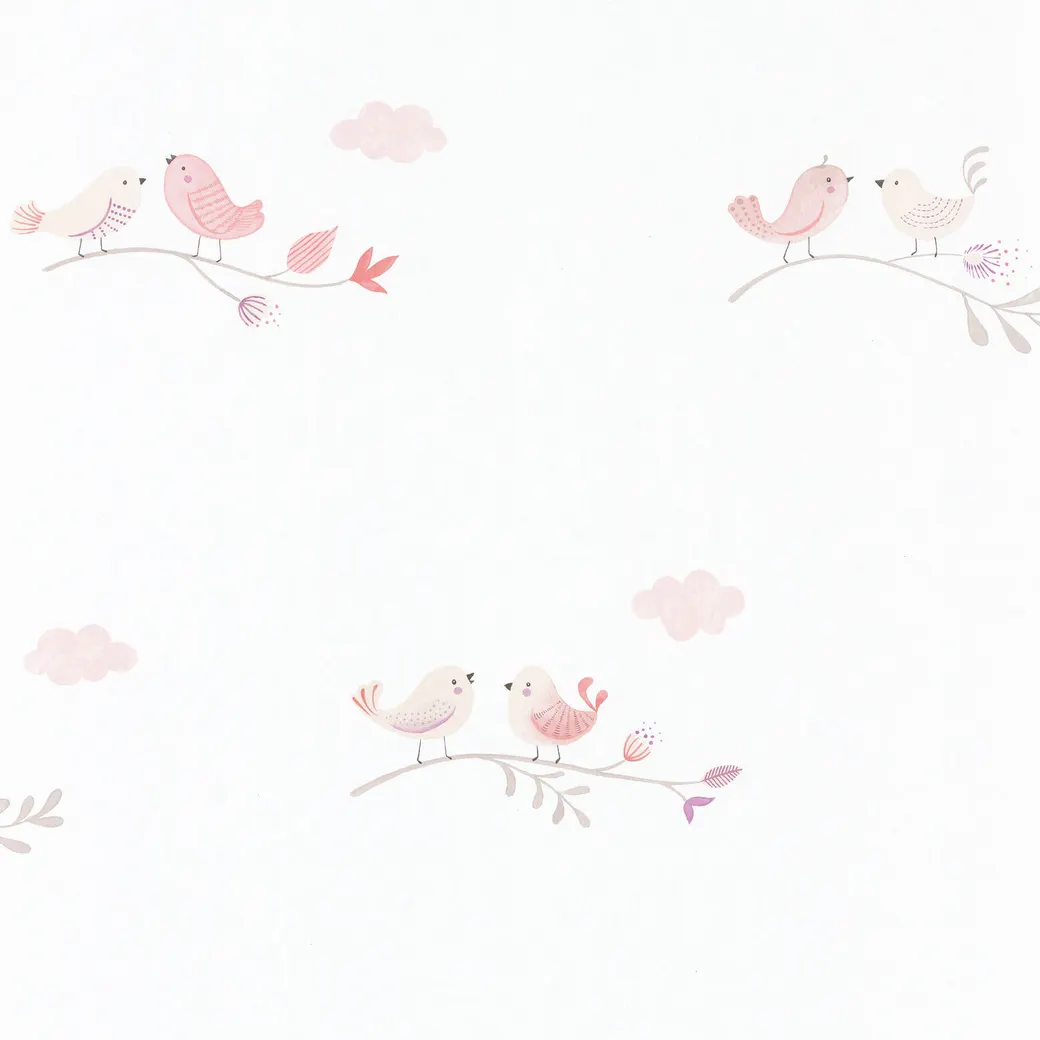 Обои детские Casadeco Rose Nino 85584298 Винил на флизелине (0,53*10,05) Белый/Розовый, Птицы